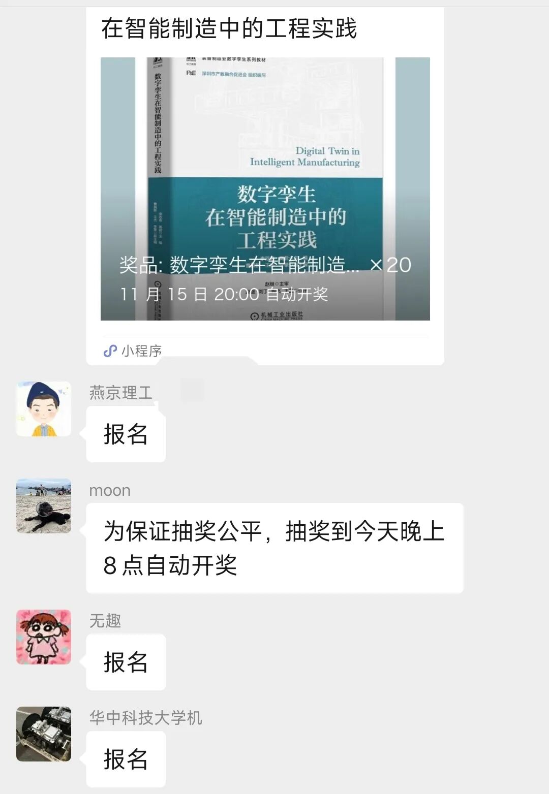 为了提高参赛师生积极性,促进会还通过抽奖形式向参赛师生赠送了多本教材《数字孪生在智能制造中的工程实践》。该书为装备制造业数字孪生系列教材,由促进会组织编写,经过多次探讨研究,并结合实际案例,全面解读数字孪生的技术脉络、核心功能及其在智能制造中的应用,填补了相关领域的空白。被列为“十四五”时期国家重点出版物出版专项规划项目“工业人工智能前沿技术与创新应用系列丛书”